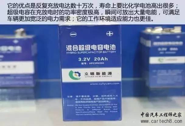 它的优点是其反复充放电达数十万次(传统化学电池只有几百至几千次),寿命上要比化学电池高出很多;超级电容在充放电时的功率密度极高,瞬间可放出大量电能,可满足车辆更加宽泛的电力需求;工作环境适应能力更佳,通常室外温度在-40℃-65℃时,其都能稳定正常工作(传统电池一般为-20℃~60℃)。