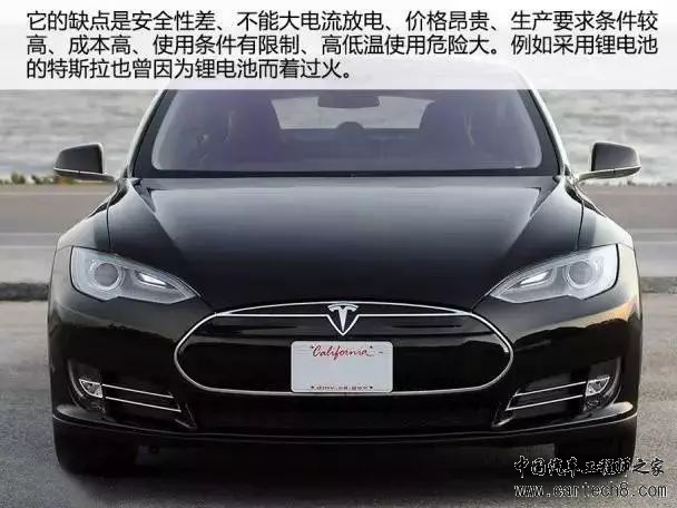 它的缺点是安全性差、不能大电流放电、价格昂贵、生产要求条件高、成本高、使用条件有限制、高低温使用危险大。例如采用锂电池的特斯拉也曾因为锂电池而着过火。