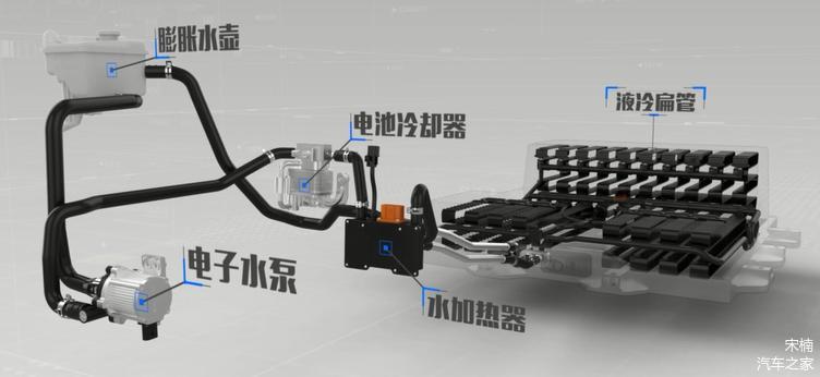 可变流量的电子水泵,依靠动力电池输出并转化的低压电驱动。较内燃机适配的传统水泵(通过曲轴链接)最大不同,电子水泵可以通过调节电流,无级输出不同泵推力。在散热或预热需求并不强烈时,电子水泵泵推力降低,在维持动力电池温度正常工况同时,节省电子水泵对电量输入需求,间接降低能耗。