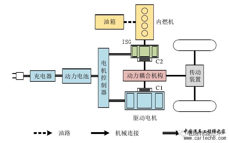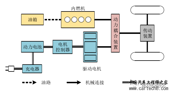 Plug-in根据插电式混合动力系统结构形式的不同,又可以分为串联式、并联式、混联式和双模式四种类型,下面简单介绍这四种插电式混合动力系统的结构特点和优缺点。