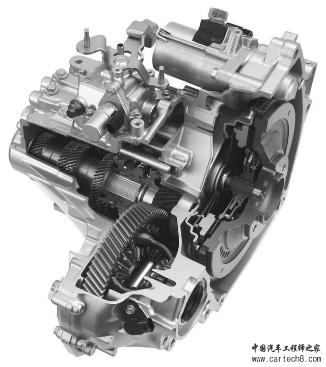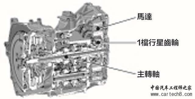 Fit的油电混合动力将马达与双离合器予以一体化,齿轮档位有7段,其中仅有奇数档位跟马达转轴连接,进行辅助和回收。