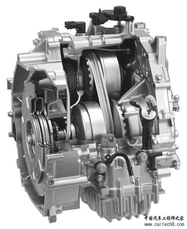 没有传统引擎那样的变速箱,取而代之的是由行星齿轮构成的动力分配机构,根据发电机的电气负载来控制恒星齿轮,以进行变速。