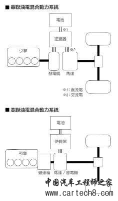 ②、混合动力还有分串联和并联?