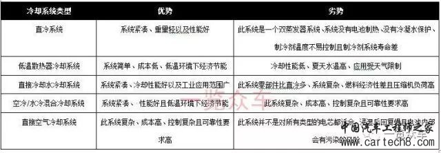 不同的热管理系统,零部件类型的结构不同、重量不同以及系统的成本不同和控制方式不同,使得系统所达到的性能也不相同。在进行电池包热管理系统类型设计选择时,需要考虑到电池的冷却性能需求,结合整车的性能以及空间大小,系统的稳定性和成本高低也是要考虑的因素。