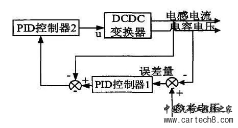 电感电流和电容电压因此需要对两个变量都要进行PID整定,一个典型的控制流程如下图所示。控制模块是由两个PID控制器组成,分别是电压控制控制外环和电流控制内环,在流程图中给出一个参考电压,设计合理的参数,就可以很快速的达到控制系统的目的。