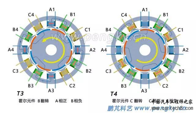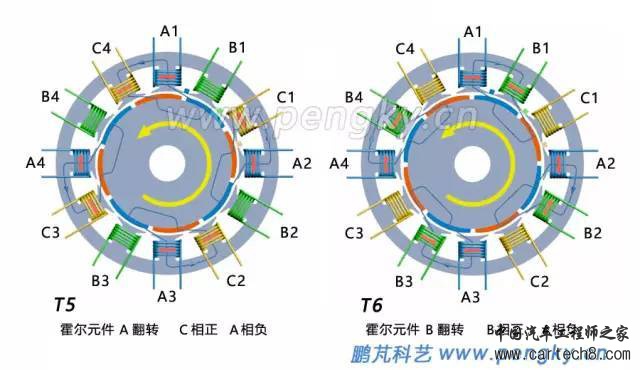 T6结束再次进入T1,重新循环,转子就不停的旋转下去。