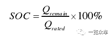 电池荷电状态(State of Charge,简称SOC),指电池中剩余电荷的可用状态。SOC定义有多种多样。目前在国际上比较统一的是从容量的角度给予定义,即荷电状态SOC表示电池的剩余容量,其在数值上等于电池剩余容量与额定容量的比值。