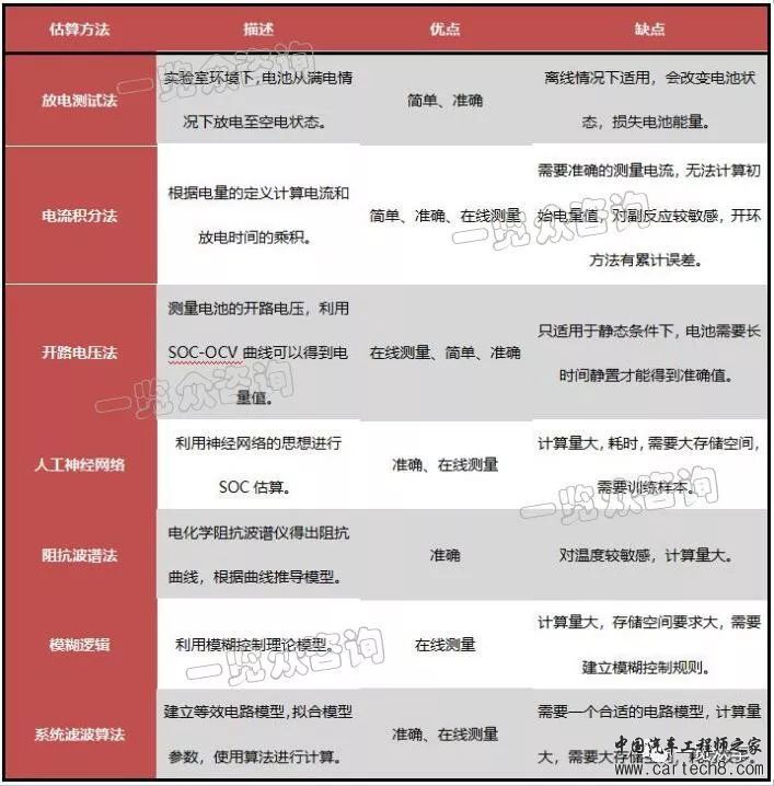 图表主要SOC估算方法比较
