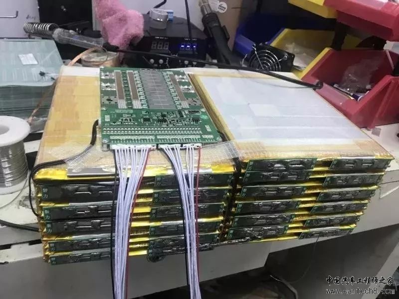 ②电芯要求:根据自己设计要求选取对应电芯,并联及串联的电池要求种类一致、型号一致,容量、内阻、电压值差异不大于2%。一般情况下,电池通过并联串联组合后,容量损失2%—5%,电池数量越多,容量损失越多。不管是软包装电池还是圆柱电池,都需要多串组合,如果一致性差,影响电池容量,一组中容量最低 的电池决定整组电池的容量。要求大电流放电性能。电机起步电流是正常工作电流的3 倍,大电流放电才能提高电机动力性能。要求电池散热良好。电池数量较多,电池箱内部的电池温升 不容易散出来,造成各电池间温度不均匀,放电特性不一,长 久造成电池性能下降。生产工艺水平高。电池要能承受颠簸路面的振动冲击。对生产工艺尤其是点焊工艺要求高。焊接完毕后进行测试以防虚焊、脱焊。