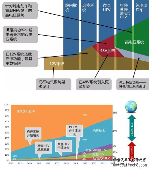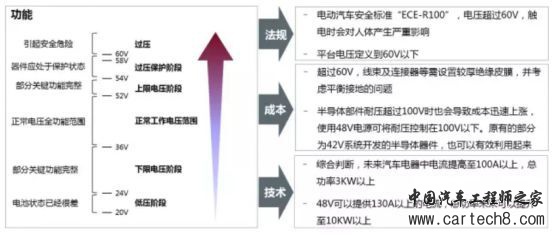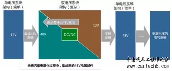 随着技术的进步,厂商开始将12/48V双电压系统进化到48V单电压系统。