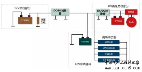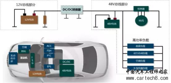 当然48V系统的出现并不是说明12V系统已经被淘汰,而是在保留之前12V系统的基础上,再增加了一套48V系统来支持弱混和中混系统的。