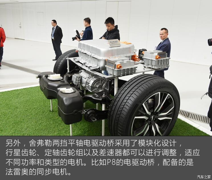 除了有两挡减速器,P8上的这款电驱动桥还有另一个特点那就是平行轴式结构,集成到车辆上时可以对底盘的影响降到最低。