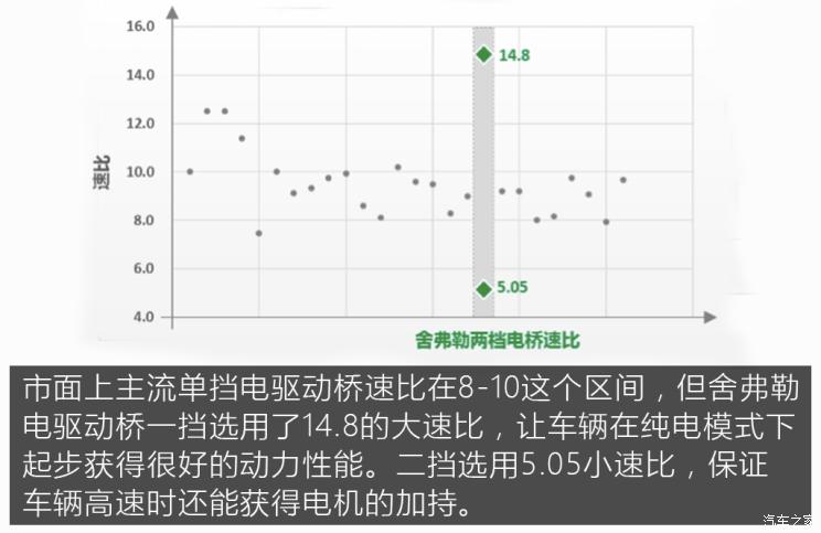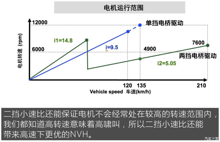 看到这里,有人一定要说既然两挡位减速器这么好,那为什么纯电动车不用呢?因为对于大多数以家用为主的纯电动车来说,极限能力并不是第一位的。而且纯电动车型可以通过选用大功率密度、高转速的电机和优秀的电控系统来弥补固定齿比减速器带来的缺失。