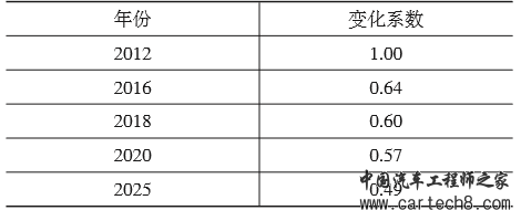 综上,48V轻混系统的直接成本增量总计约为7558元。如前所述,这是基于EPA在2012进行实车拆解获得的数据进行折算获得的。显然,48V系统的实际应用成本还必须考虑规模化生产及技术进步带来的成本下降,这个变化可以利用学习曲线进行时间上的延展估算。考虑48V轻混系统的技术特点,选取了如表7的学习曲线变化系数。