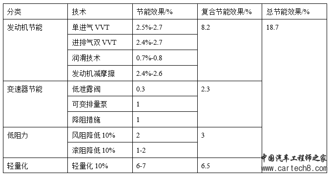 不考虑新能源汽车技术的应用,仅从节能汽车的角度分析车企满足四阶段油耗法规的达标策略,具体如表10所示。