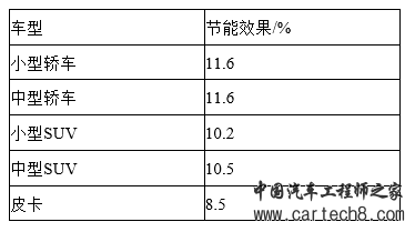 EPA则对混合动力技术进行了分车型研究,其研究结果表明轻混系统的节能效果约为8.5%-11.6%,且随着车型增大,节能效果略有减小,如表2所示。