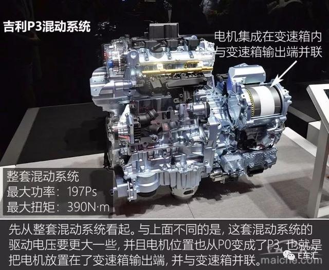 严格地讲、P3和P2应该称作近亲,与其不同的是电机的位置为变速箱输出轴而不是输入轴。由于技术原因,目前已知应用的车型非常少,不过吉利貌似已经克服了难题,在5月份的北京车展上曾展出了自己的模型,尽管官方没有明说,但结构明显为P3布局。