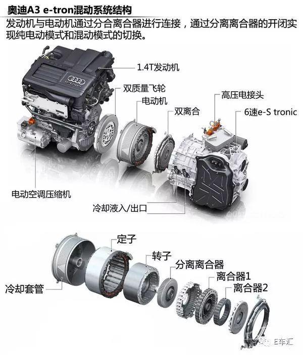 这种结构基本可以视为混动的最初形式,它的布局位置与传统的燃油车发电机位置一致,在发动机曲轴前端,并由皮带连接进行驱动,称为BSG电机。除了发电,它还集成了起动机的功能,整个发动机更为紧凑。当然,受限于皮带传动,它必须和发动机保持步调一致,因此没办法独立运行提供纯电行驶。