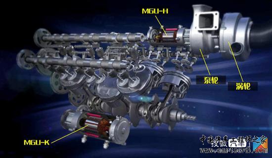 而新增的热能回收系统(ERS-H)则是用来回收热能的,也就是回收发动机废气中的能量。发动机工作时,超过70%的热能都以各种形式而损耗,其中排气的热损失占了很大比重,而有了热能回收系统后,排气中的热损失也很好的得到了利用。