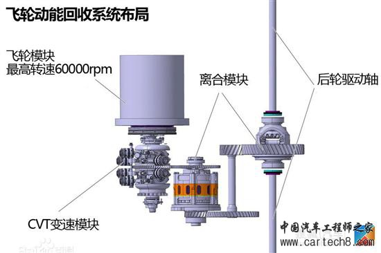 早期的KERS动能回收系统采用了飞轮回收系统,它存在的意义是将制动时所产生的热能进行回收。KERS电机回收动能的原理并不复杂,电机通过一定齿比的齿轮机构与发动机的曲轴连接。在制动时,驱动电机发电,同时电机产生的回馈力矩与后制动卡钳共同为后轴提供制动力。而80马力的电机还能够为赛车带来额外的驱动力。