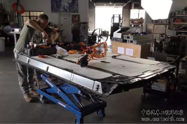 Model S 设计有一个专门用于保护电池的电池壳,重达 275 磅(约 124.74kg),相当于电池包重量的 1/4。