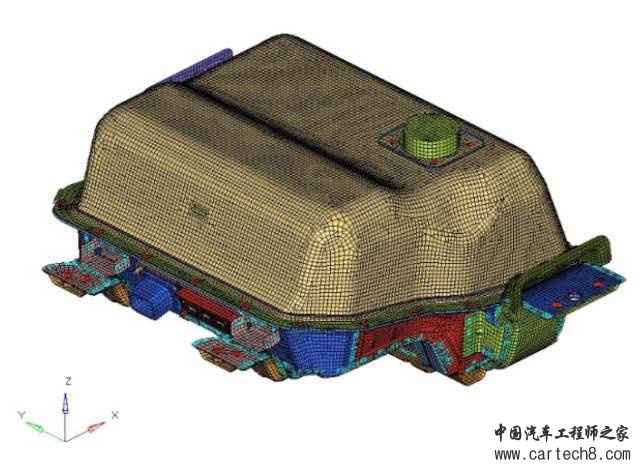 蓄电池作为混动和纯电动车的动力来源之一,在整车上承担着重要的作用。而电池包壳体则起着保证电池组安全和正常工作的关键作用。为保证电池包系统的正常工作,GB/T中对电池包的挤压性能提出了要求。本分析的目的就是通过计算机仿真的方法检验电池包是否可以满足国标对电池包挤压性能的要求。在动力驱动系统开发早期,对电池包的抗挤压特性进行合理的评估和改进可以减少设计周期,降低风险,保证电池包能满足安全性能的要求,同时保证零件的局部强度性能。