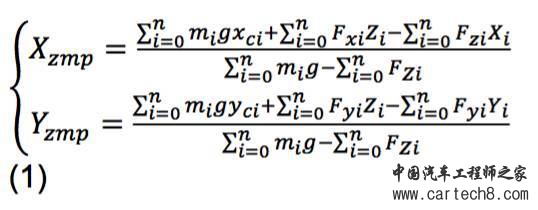 X 方向的挤压模型如图 2 所示,电池包放置于支撑板和挤压板之间,以较小的速度来进行挤压,用准静态来模拟静态受力。考虑到电池包前挤压面与后挤压面之间存在一个高度差,在挤压过程中会产生一个转矩,导致电池包在挤压过程中翻转,并且随着电池包的翻转,高度差会增加,从而产生更大的转矩。因此,需要在电池包翻转初期对其进行控制, 限制住电池包在挤压过程中不符合实际的移动变形。依据 ZMP (zero moment point) 理论[10],电池包所受到的合力 (外力、惯性力、重力) 的延长线的交点称为 ZMP,当 ZMP 位置位于电池包与支撑板接触范围内时,电池包将不会产生翻转。假设接触面的 Z 向位置为 0,且准静态不考虑惯性力,则 ZMP 位置表达式为: