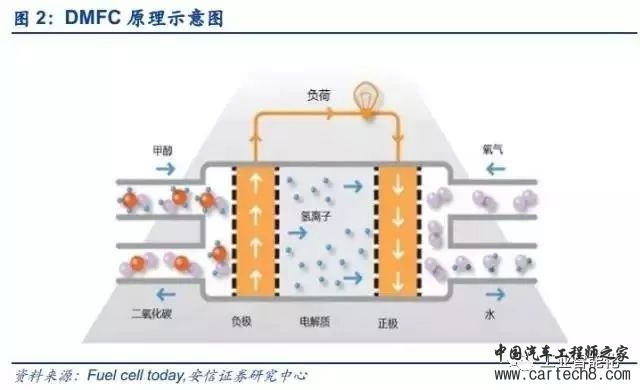 1.2.甲醇燃料电池(DMFC):运行温度适中,主要应用于消费电子