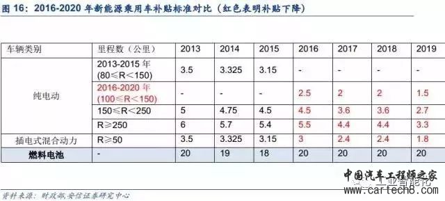 根据中央的补贴标准,2013-2015年,燃料电池乘用车的补贴标准逐年递减5%,从2013年20万元降低到2015年的18万元,但根据《关于2016-2020年新能源汽车推广应用财政支持政策的通知》,2016-2020年又重新恢复到20万元,而纯电动和插电混合乘用车的补贴逐渐退坡。除此之外,还给予燃料电池商用车中型30万、重型50万的补贴。