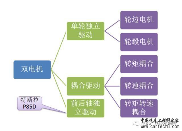 在《双电机去驱动家族探秘》这篇文章中, 主要介绍了一种叫“双电机耦合驱动的”系统,它只不过是家族的一员。双电机完整的家族谱系,如下图所示: