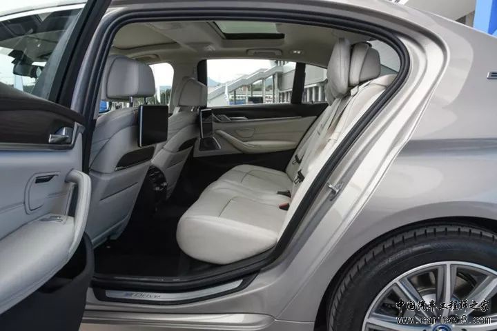 「图」宝马 530Le 电池组布置在第二排座椅下方 在后备箱空间方面,和普通版 5 系比起来稍小一些,但影响不大;至于后排座椅,由于它是豪华行政级轿车,为了保证后座的舒适性,它的后排座椅是不支持放倒的。