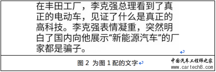 笔者对“中国新能源汽车厂家是骗子”的说法,表示愤慨。但这个话,从开始说起到目前已经有15年了,就没有停过。你看,图1明明是李克强总理在认真倾听日方领导讲解深奥技术时自然表情,却被媒体配上“表情凝重”4个字,媒体借机塞进自己的观点,说“中国新能源汽车厂家是骗子”。