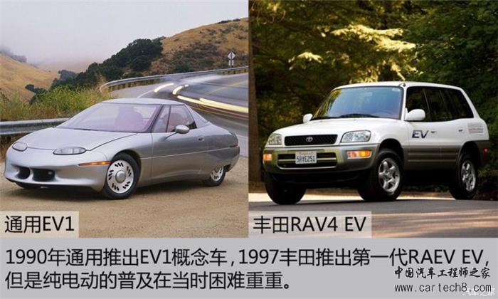 90年代,丰田同时推出了RAV4 EV纯电车型和普锐斯混合动力车,在纯电动车探索失败后转而投入了混动车型的研发。而当时位于美国的通用,在推出第一款电动汽车EV1之后,在能源等外部环境的各种压力下,最终放弃了这款车,选择了发展沃蓝达这样的增程式混动车。这就是单一环境变量带来的技术发展的局限性。