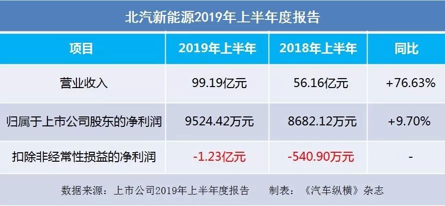 北汽新能源:2019上半年净利润9524.42万元,增长9.70%