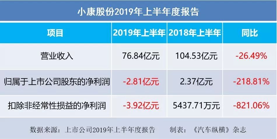 小康股份:2019上半年净利润亏损2.81亿元,下降218.81%