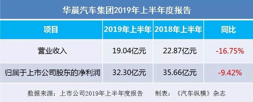 华晨集团:2019上半年净利润32.30亿元,下降9.42%