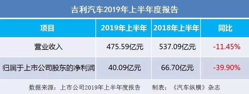 吉利汽车:2019上半年净利润40.09亿元,下降39.90%