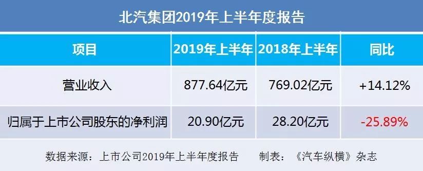 北汽集团:2019上半年净利润20.90亿元,下降25.89%
