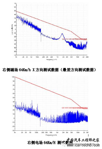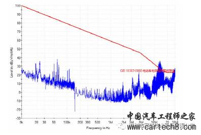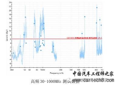 由于某整车厂混合动力汽车在前期设计阶段没有考虑EMC方面的设计,同时各个零部件厂家自身设计能力的不足,单个部件也不能够满足要求,因此整车在进行EMC测试阶段,也不可避免地遇到不能够满足标准GB 18655和GB/T 18387要求,并且超标严重。