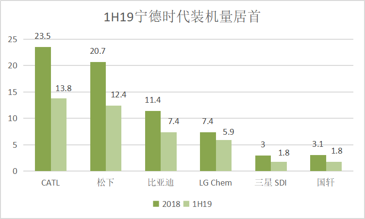 1H19 全球主要动力电池企业装机量(海外为测算值)