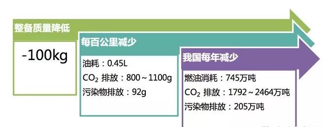 整备质量降低带来的油耗和CO2排放的影响