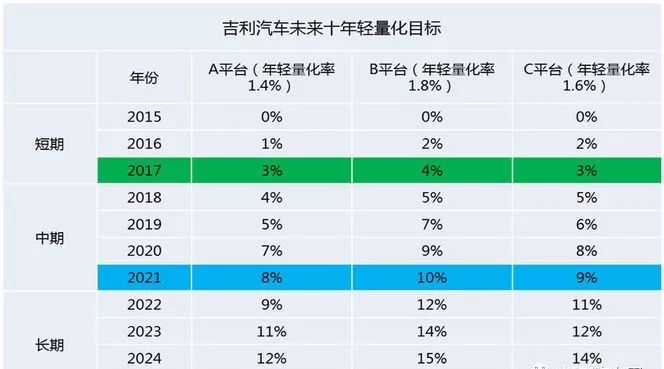 吉利汽车未来十年轻量化目标
