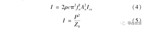 式中:I— 声强,W.m-2;P— 声压,Pa;ρ— 空气的密度,kg.m-3;fn—n阶固有频率,Hz;An— 第n阶振动位移,m;Icn— 相对声强系数,常数;c— 声速,m/ s;Z0—空气的特性阻抗(等于 ρc),kg.m-2.s-1。