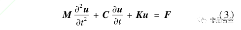 式中:M— 质量矩阵;C— 阻尼矩阵;K— 刚度矩阵;u— 单元节点的位移矢量矩阵;F— 激励载荷矢量。