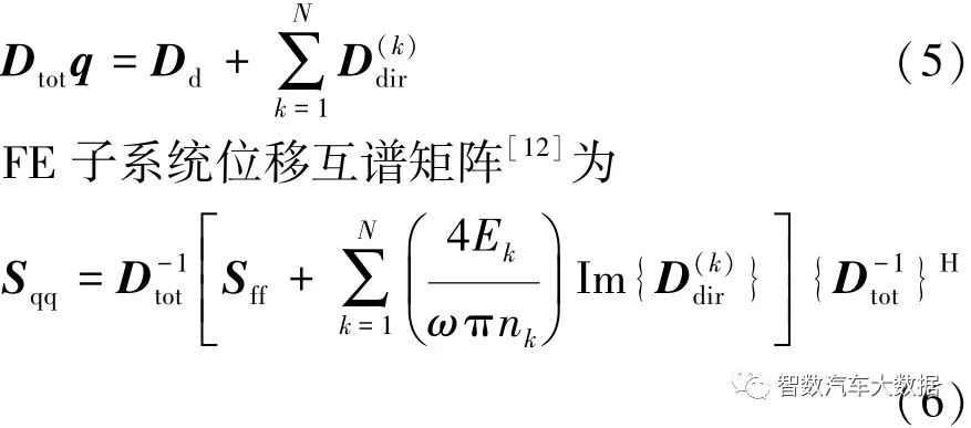 式中:Dd为连接边界处子系统的动刚度矩阵;D(k)dir为第k个子系统的直接场动刚度矩阵;Sqq为子系统的位移互谱矩阵;Sff为子系统激励力互谱矩阵;Ek为第k个子系统的振动能量;nk为第k个子系统的模态密度。