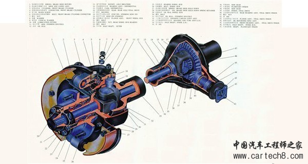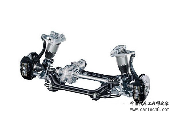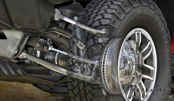 整体桥式是最典型的非独立悬架,这种悬架多出现在要求极限越野的硬派SUV,甚至军用车,例如悍马,重度改装的“大脚兽”也对这种悬架情有独钟。由于结构相对简单,能承受更大扭力,同时采用螺旋弹簧的整体桥悬挂具备比一般悬挂大得多的行程,在崎岖环境下可以让四轮更好地获得抓地力。缺点嘛,公路性能奇差,可以这么说,整体桥悬架将非独立悬架的优点发扬得最出色,同时缺点也暴露得最彻底。