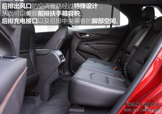 大多数车型的后排出风口都与扶手箱相连,探界者也不例外。然而要同时兼顾扶手箱容积、后排中央乘客腿部空间、后排出风口下方的充电接口等多种条件则会有些困难,或许其中某一项就得做出牺牲了。探界者则对后排出风口的管路进行了特别设计,从而做到同时兼顾上述所有需求。