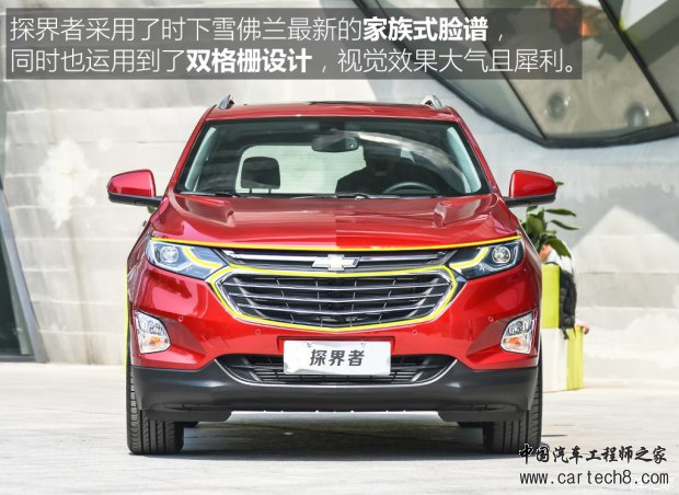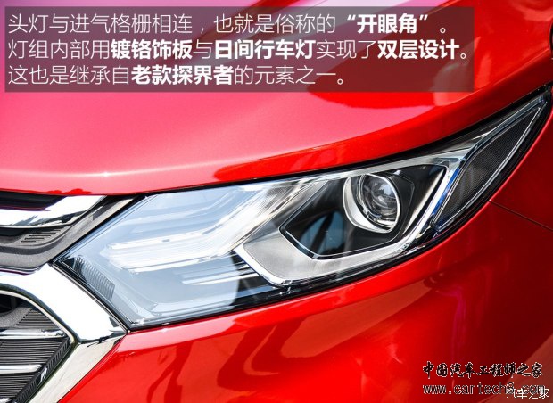 正如之前提到的,车头方面,探界者采用了雪佛兰最新的家族式脸谱,其代表就是横向扩张的进气格栅,而大灯轮廓也与进气格栅连为一体,使得视觉效果的整体感更强。