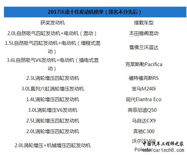 但是,即便有各大品牌来助力三缸发动机,但是国人还是不买账,一黑到底。就连出榜的沃德十佳发动机也无一是三缸发动机。
