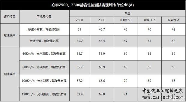 以NVH(Noise、Vibration、Harshness)为例,来看看众泰汽车产品的噪音表现在行业中处于什么样的地位。